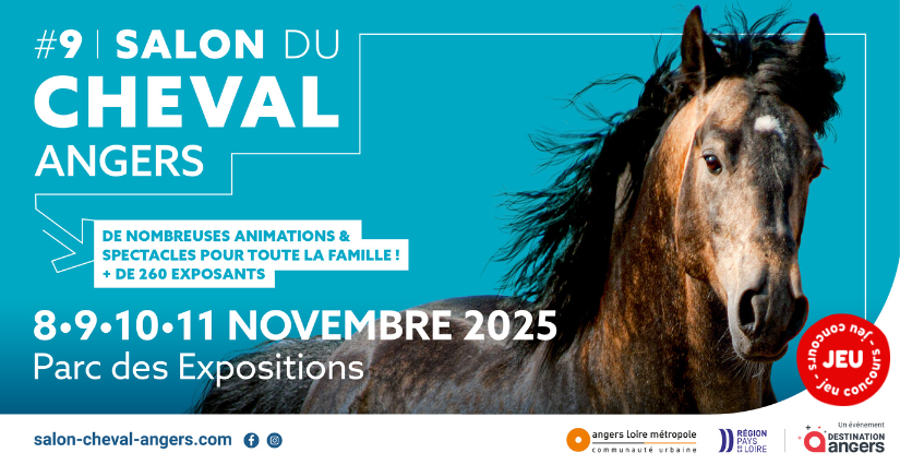 Kidiklik et Destination Angers vous offrent la chance de gagner l’une des 6 entrées (1 place par gagnant) pour le Salon du Cheval d'Angers, qui se tiendra du samedi 8 au mardi 11 novembre 2025 au Parc des Expositions. Venez vivre un moment exceptionnel en famille !